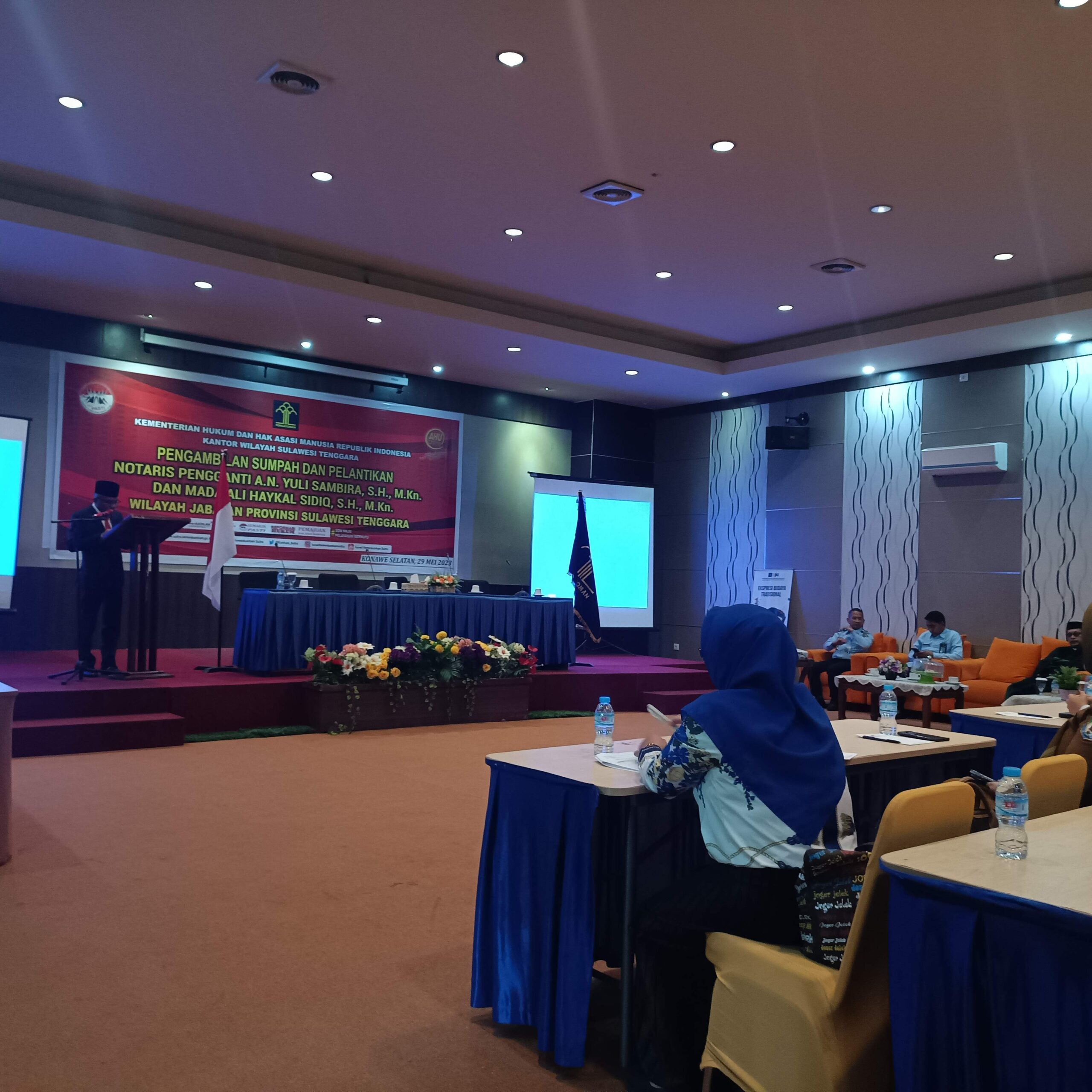 Kendari, Berikabar. co – Kepala Kantor Wilayah Kementerian Hukum dah HAM Sulawesi Tenggara, Silvester Sili Laba melantik Notaris pengganti Mada Ali Haykal Sidiq dan Yuli Sambira di Aula Wonua Monapa, Senin (29/5/2023).