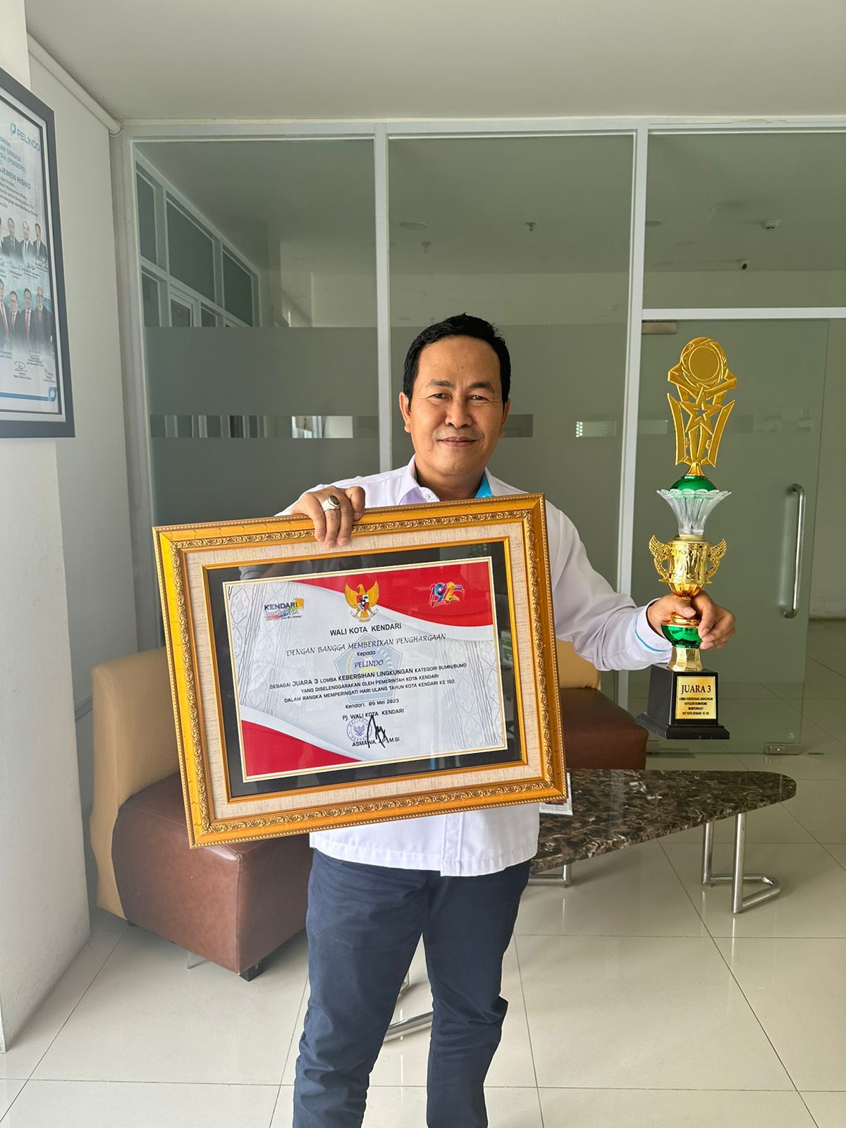 Penghargaan tersebut diserahkan Pj. Wali Kota Kendari, Asmawa Tosepu kepada General Manager (GM) Pelindo Regional 4 Kendari, yang diwakili Manager Pelindo Regional 4 Kendari, Alfian Achmad, di Gedung Kantor Pemerintah Kota Kendari, Sulawesi Tenggara, usai pelaksanaan Upacara Hari Kebangkitan Nasional, Senin (22/05/2023).