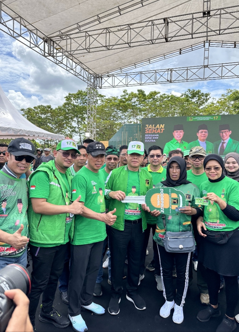 Kendari, Berikabar. co – Ketua Dewan Pengurus Wilayah (DPW) Partai Persatuan Pembangunan (PPP) Sulawesi Tenggara (Sultra), Mayjen TNI (Purn) Andi Sumangerukka bersama dengan para pengurus melaksanakan acara jalan sehat yang dihadiri oleh puluhan ribu masyarakat umum, Minggu (16/7/2023) di Pelataran Tugu Religi Sultra atau Tugu Eks MTQ.