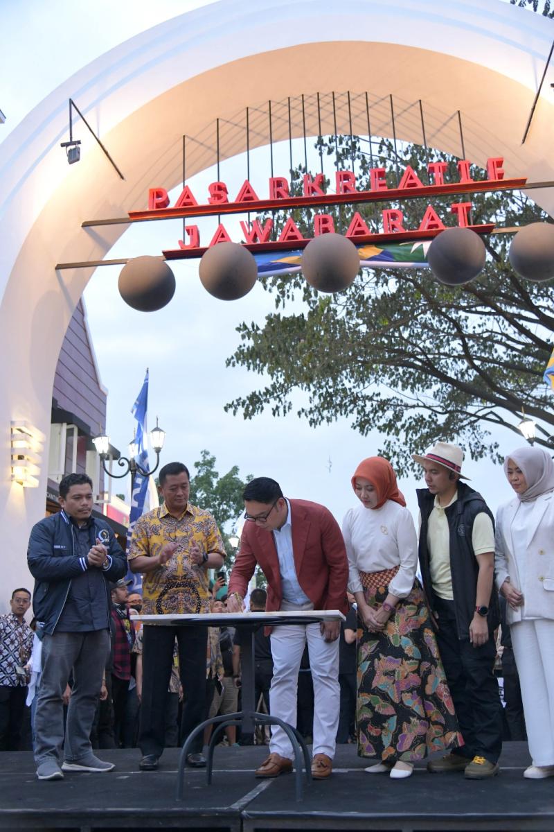KOTA BANDUNG — Gubernur Jawa Barat Ridwan Kamil meresmikan Pasar Kreatif Jawa Barat di kawasan Cikutra, Kota Bandung, Jumat (7/7/2023).