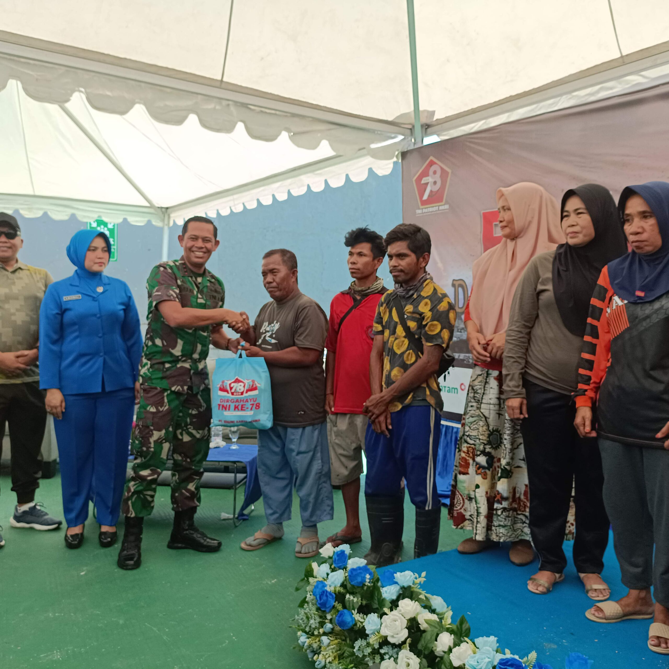 Ditambahkannya bahwa pembagian sembako yang dilakukan hari itu sejalan dengan tema HUT TNI ‘TNI Patriot NKRI: Pengawal Demokrasi untuk Indonesia Maju’.