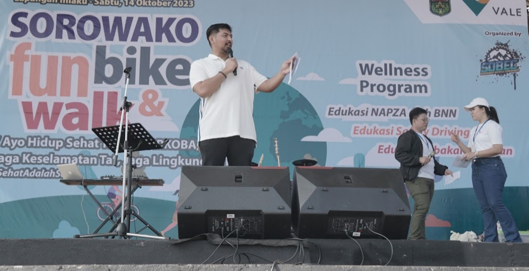 Lutim, Berikabar. co – PT Vale Indonesia Tbk (PT Vale) bersama Komunitas Sorowako Bicycle Club (SOBEC) mengadakan Fun Bike, Fun Walk dan senam Sumba di Lapangan Iniaku, Sorowako, Kecamatan Nuha, Luwu Timur, Sabtu (14/10/2023). Kegiatan ini adalah bagian dari wellness program dengan mengkampanyekan perilaku hidup sehat, serta ajakan untuk mengurangi emisi karbon.