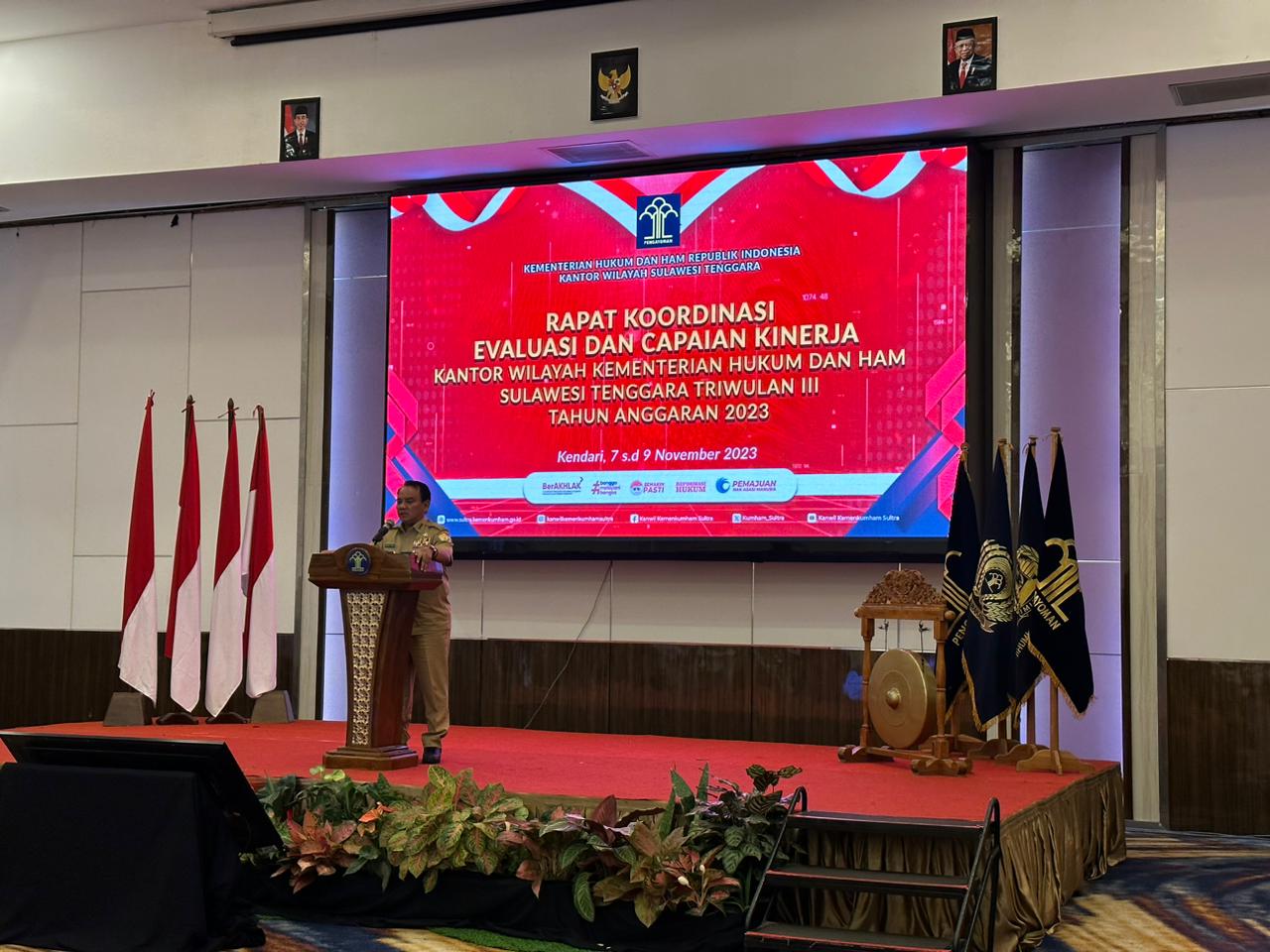 Kendari, Berikabar. co – Pj. Gubernur Sulawesi Tenggara (Sultra), Andap Budhi Revianto, membuka kegiatan Rapat Koordinasi Evaluasi Capaian Kinerja Kantor Wilayah Kementerian Hukum dan HAM (Kemenkukham) Sultra.