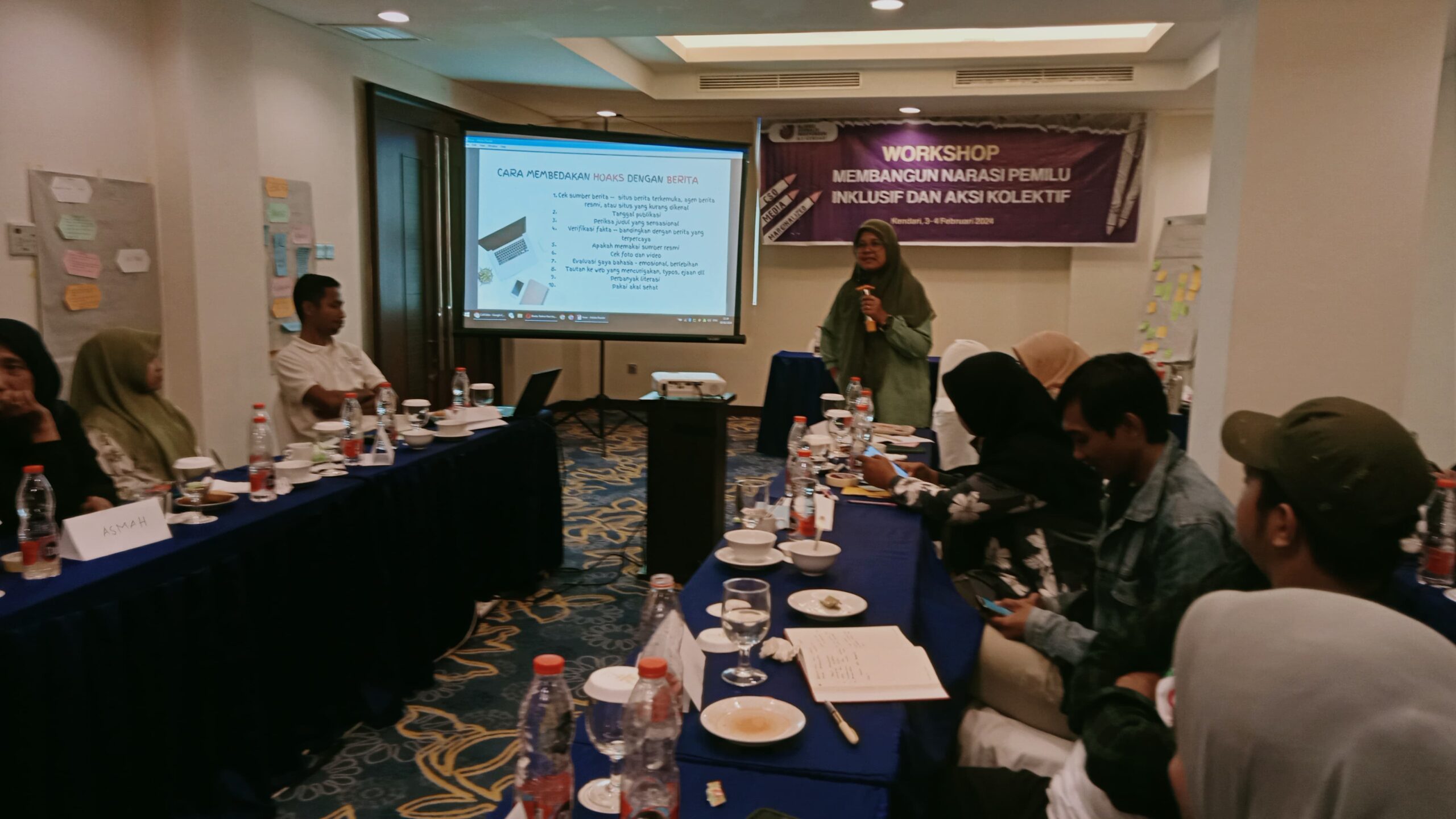 Kendari, Berikabar. co – Aliansi Jurnalis Independen (AJI) Kota Kendari menggelar wokrhsop bertajuk “Membangun narasi pemilu inklusif dan aksi kolektif” di Plaza Inn Kendari. Kegiatan yang diikuti jurnalis, organisasi masyarakat sipil dan kaum marjinal ini digelar selama dua hari 3 sampai 4 Februari 2024.