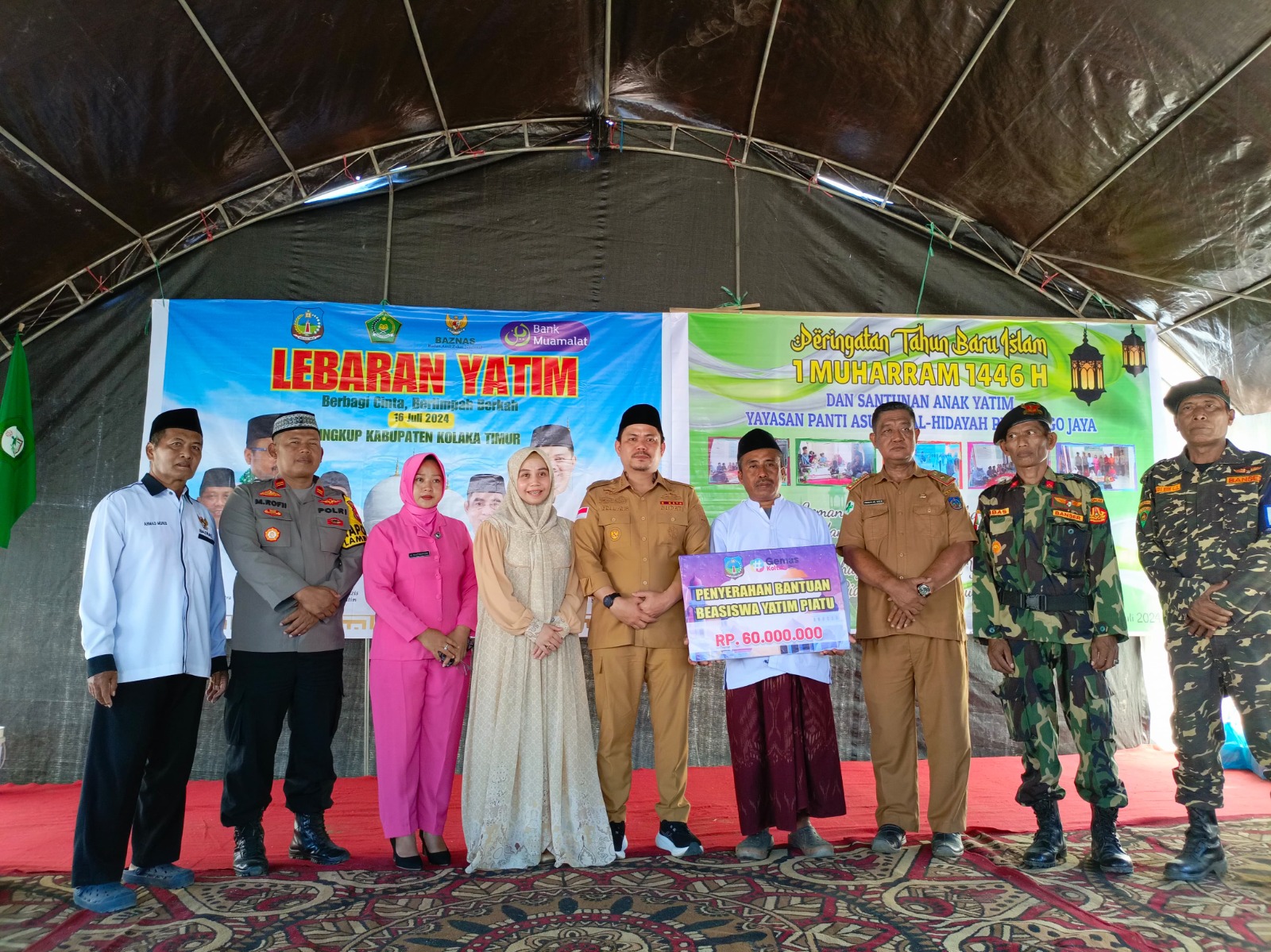 Bupati Koltim menyerahkan santunan beasiswa anak yatim untuk yayasan tersebut, sebanyak 60 juta rupiah dan paket sembako.