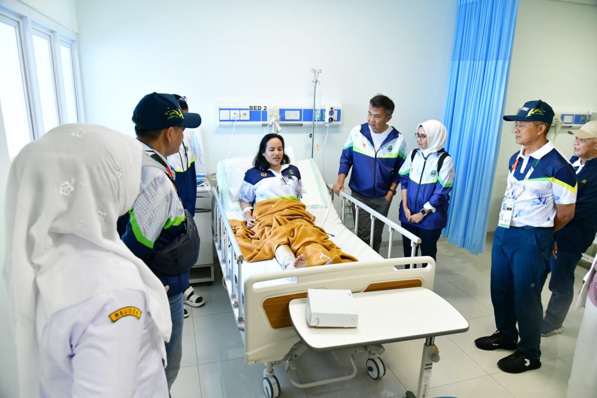 Pagi harinya, Bey juga sempat melihat kondisi atlet terjung payung putri Yazella Agustin yang cedera patah kaki saat latihan pada nomor akurasi putri beregu di Lanud Sultan Iskandar Muda, banda Aceh, Senin (9/9/2024).