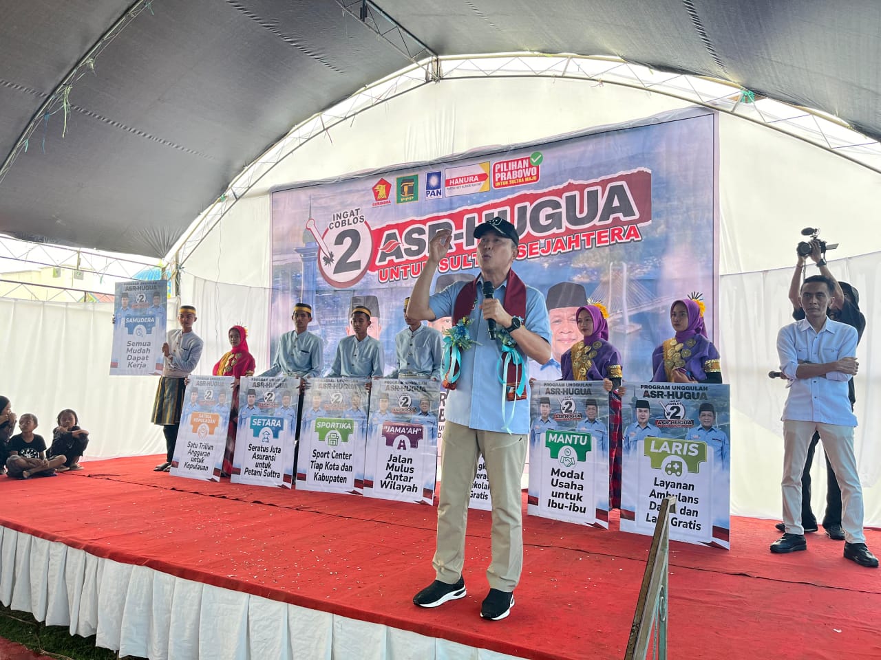 Antusiasme masyarakat tidak surut untuk menghadiri dua lokasi kampanye yang telah dijadwalkan, padahal saat itu lokasi kampanye sedang diguyur hujan.