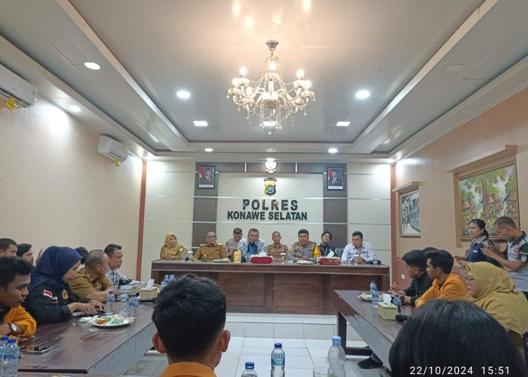 Konawe Selatan, Berikabar.co – Kapolres Konsel AKBP Febry Sam, SIK, M.Si didampingi Ketua PGRI Sulawesi Tenggara Abdul Halim Momo , Komisi Perlindungan Anak Daerah Konsel, Kadis Pendidikan Konsel Erawan Suplayuda, S.Pd dan Perwakilan Dinas Sosial Konsel melangsungkan konferensi pers terkait kasus dugaan penganiayaan yang dilakukan oleh oknum guru honorer SDN 4 Kecamatan Baito Kabupaten Konsel terhadap muridnya. Pertemuan berlangsung di Aula Vicon Polres Konawe Selatan, Selasa (22/10/2024).