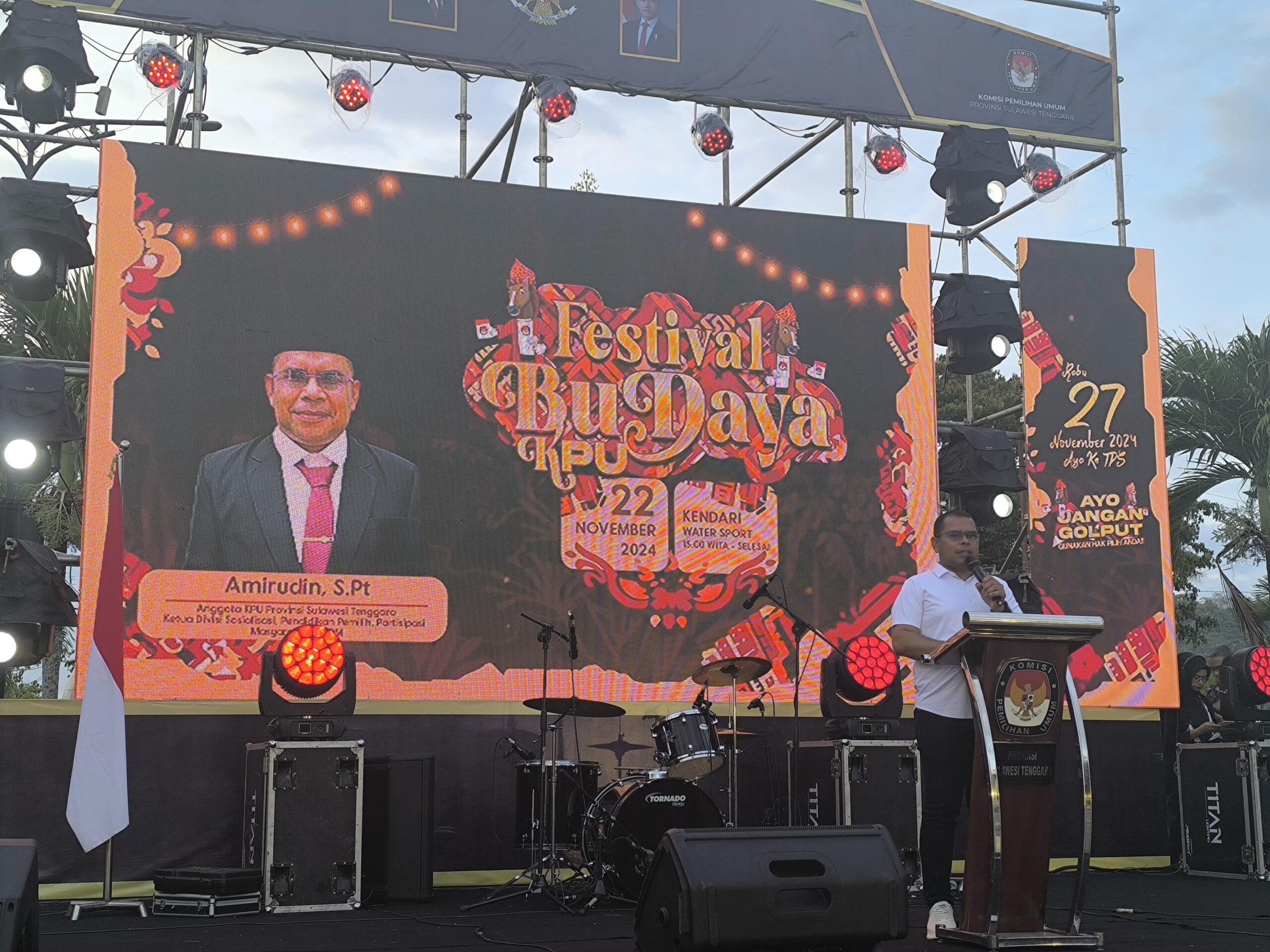 “Kegiatan sore ini kami memang mengajak komunitas budaya dengan tema ‘Demokrasi Berbudaya’ dengan tujuan bagaimana kita menanamkan nilai-nilai kearifan lokal jelang pilkada,” katanya saat membuka Festival Budaya KPU di Water Sport Kendari, Jumat (22/11/2024).