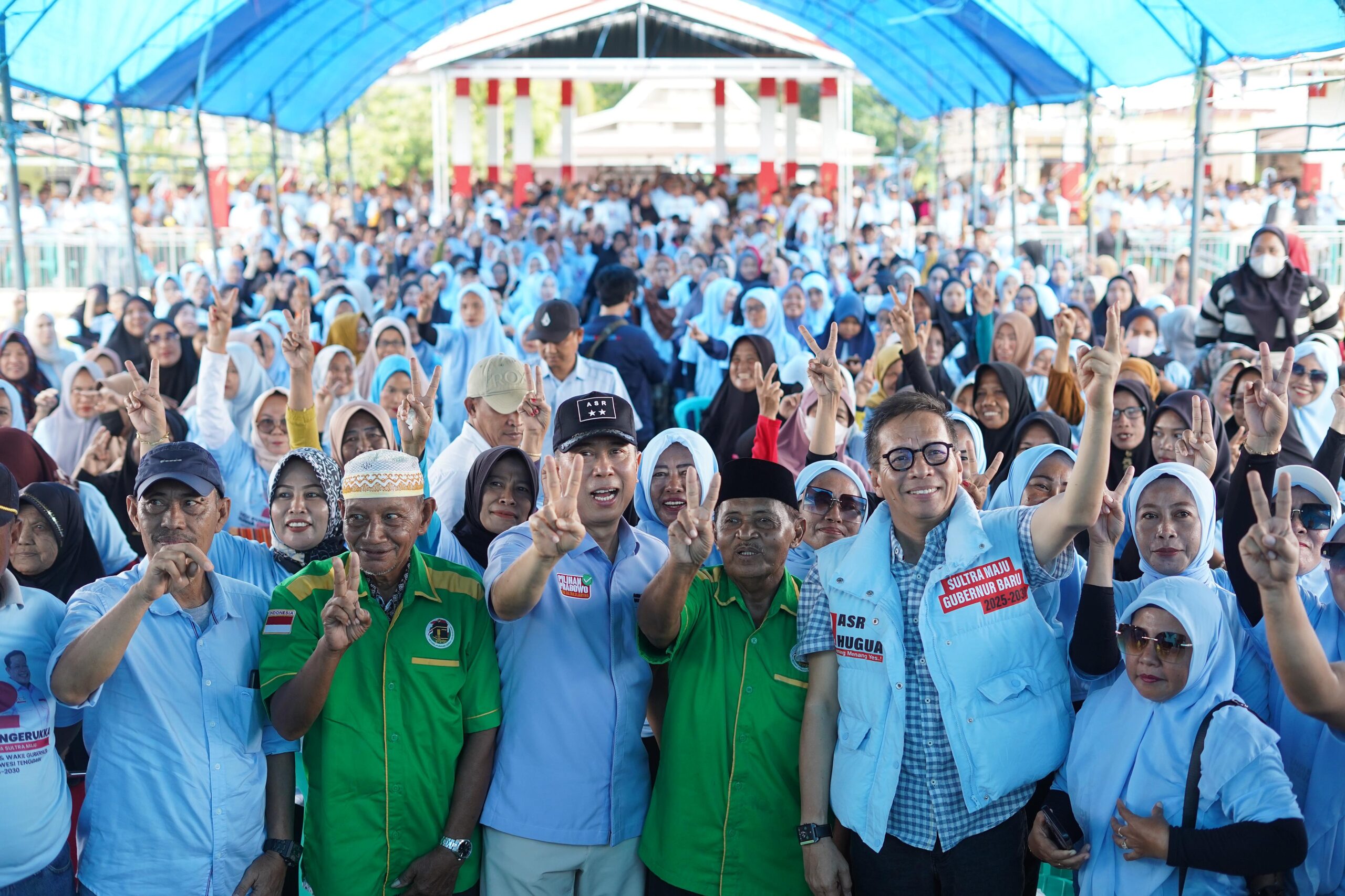 “ASR, Gubernurku, ASR Gubernurku, ASR Gubernurku. Menang, menang, menang, yes,” teriak warga Kolaka yang memadati lokasi kampanye.