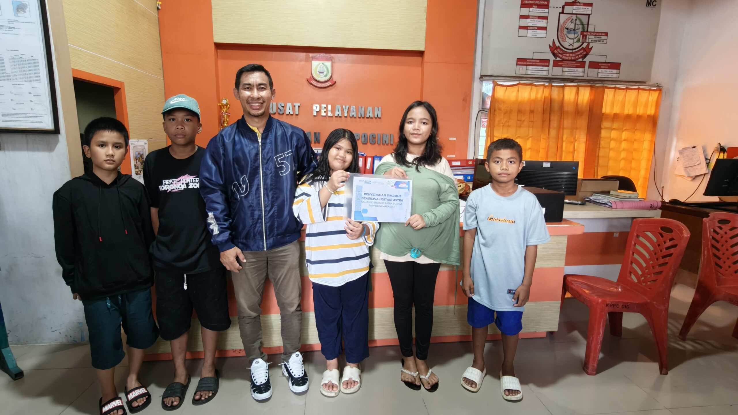 Penyerahan diberikan secara simbolis kepada para penerima manfaat beasiswa Astra Lestari, bertempat di Kantor Kelurahan Rappocini. “Kami berharap dengan penyerahan beasiswa ini dapat menambah semangat untuk berkarya dan berprestasi yang lebih dari tahun-tahun sebelumnya,” ucap Wanny.