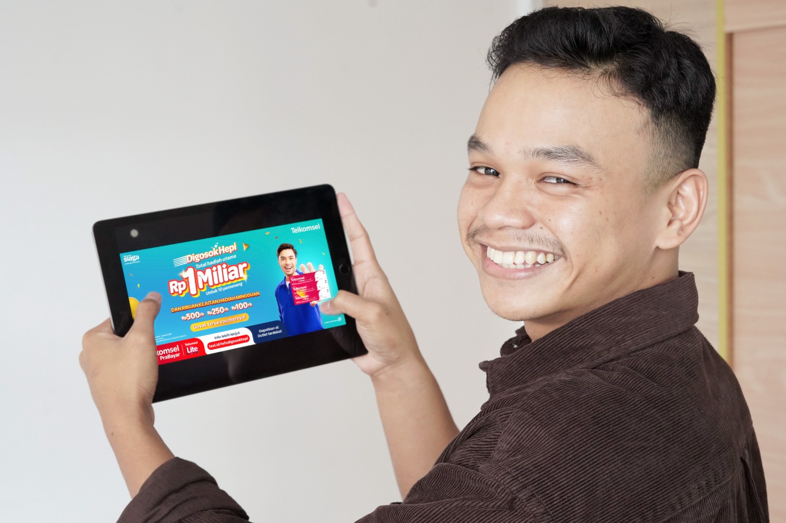 General Manager Consumer Business Telkomsel Region Sulawesi – Kuntum Wahyudi mengungkapkan bahwa program ini merupakan langkah nyata komitmen Telkomsel dalam memberikan apresiasi kepada seluruh pelanggan Telkomsel khususnya pelanggan prabayar yang telah setia menggunakan produk dan layanan unggulan telkomsel. “Selain memenuhi kebutuhan pelanggan akan pilihan internet yang hemat dan sesuai kebutuhan, program Digosok Hepi juga memberi kesempatan pelanggan untuk menjadi Pemenang Hadiah Mingguan berupa uang tunai untuk ribuan pemenang dan Grand Prize (Undian Hadiah Utama) berhadiah total 1 Miliar di akhir program,” katanya.