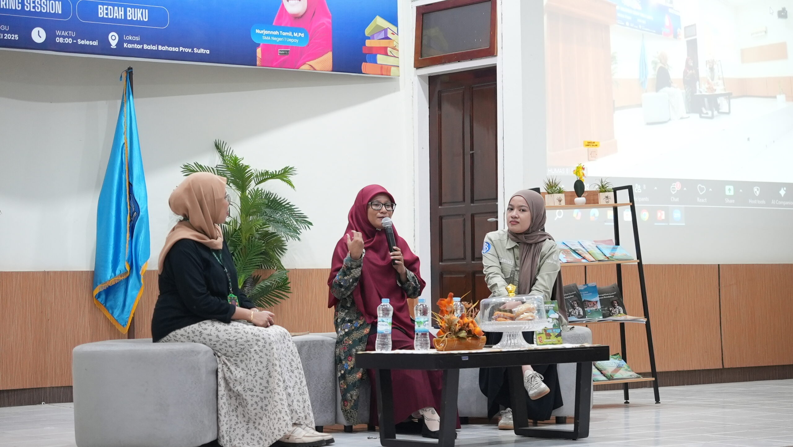 Kegiatan yang digelar di Aula Balai Bahasa Sultra ini turut menghadirkan penulis buku cerita anak “Pak Ode dan Nosi”, Nurjannah Tamil, yang juga merupakan guru di SMA Negeri 1 Uepai. Nurjannah berbagi cerita tentang proses kreatif dalam menulis buku anak dan pentingnya memperkenalkan nilai-nilai lokal kepada anak sejak dini.