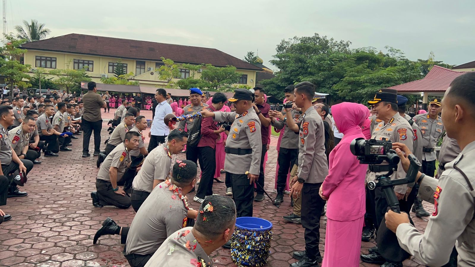 Rangkaian upacara dilanjutkan dengan tradisi penyiraman air kembang kepada para personel yang naik pangkat. Tradisi simbolis ini dilakukan oleh pejabat pimpinan dan didampingi oleh Bhayangkari, melambangkan penyucian diri dan semangat baru dalam mengemban tugas-tugas kepolisian. Kegiatan ini berjalan lancar dan penuh rasa syukur, menandai semangat baru personel Polda Sultra dalam menyongsong Hari Bhayangkara ke-79 dan terus mengabdi kepada bangsa dan negara.