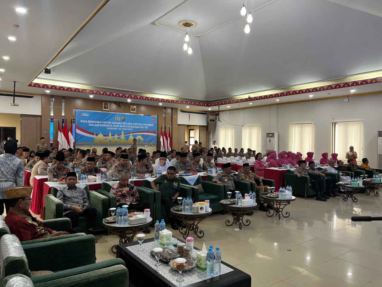 Kendari, Berikabar.co – Dalam rangka menyambut Hari Bhayangkara ke-79, Kepolisian Daerah Sulawesi Tenggara (Polda Sultra) menyelenggarakan doa bersama lintas agama yang berlangsung khidmat pada Senin (30/6). Acara ini dilaksanakan secara hybrid, terhubung langsung melalui Zoom Meeting dan siaran Polri TV dari Mabes Polri, di mana Kapolri Jenderal Listyo Sigit Prabowo memimpin kegiatan tersebut yang juga dirangkaikan dengan pemberian santunan kepada 100 anak yatim.