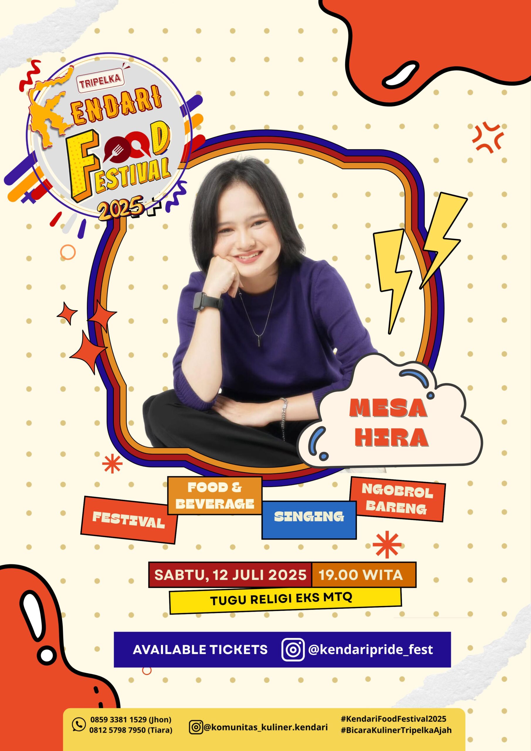 Sebagai puncak acara yang istimewa, panggung utama KFF 2025 akan dimeriahkan oleh penampilan Mesa Hira. Penyanyi rock wanita yang dikenal luas dari ajang Indonesian Idol ini siap menghibur para pengunjung dengan suaranya yang khas dan energik, menambah kemeriahan festival.