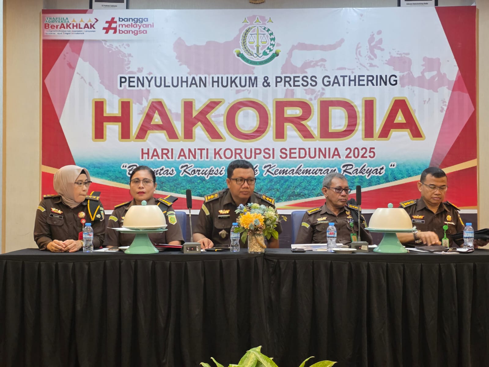 Kendari, Berikabar.co – Kejaksaan Tinggi (Kejati) Sulawesi Tenggara menunjukkan komitmennya dalam peringatan Hari Anti Korupsi Sedunia (HAKORDIA) 2025. Rangkaian peringatan tersebut diisi dengan kegiatan Penyuluhan Hukum dan Press Gathering yang diselenggarakan di Hotel Horison Kendari, Selasa (09/12/2025).
