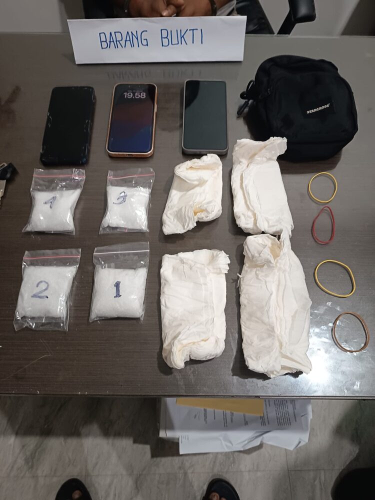 “Dari hasil penggeledahan yang disaksikan aparat lingkungan setempat, ditemukan empat saset sabu dengan berat sekitar 200 gram yang disimpan dalam tas selempang di bagasi kendaraan,” jelas Kombes Pol. Amri Yudhy.