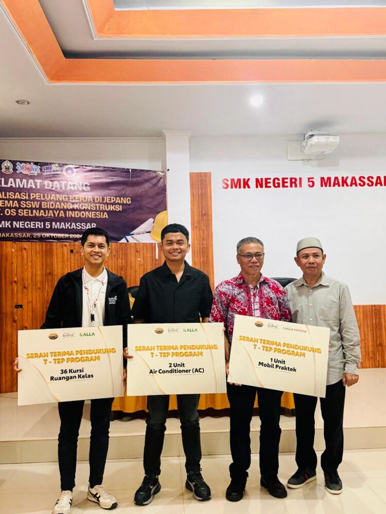 Makassar, Berikabar.co – Kalla Toyota terus mempertegas peran aktifnya dalam memajukan pendidikan vokasi di wilayah Indonesia Timur. Melalui program unggulan Toyota Technical Education Program (T-TEP), Kalla Toyota bersama Yayasan Kalla meresmikan pemberian bantuan fasilitas pendidikan bagi SMK Negeri 5 Makassar guna menyelaraskan kompetensi siswa dengan standar industri otomotif terkini.