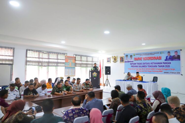 Kendari, Berikabar.co – Pemerintah Provinsi Sulawesi Tenggara (Sultra) bergerak cepat untuk mengamankan ketersediaan dan stabilitas harga bahan pokok menjelang Hari Raya Idulfitri. Melalui Rapat Koordinasi Satuan Tugas (Satgas) Ketahanan Pangan Tahun 2026 yang digelar Jumat (27/2/2026), pemerintah memastikan bantuan pangan akan segera mendarat di tangan masyarakat sebelum hari raya tiba.