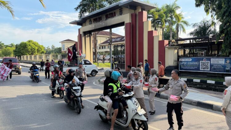 Kendari, Berikabar.co – Kepolisian Daerah Sulawesi Tenggara (Polda Sultra) terus mengintensifkan aksi kepedulian sosial sepanjang bulan suci Ramadan. Pada Selasa (3/3/2026) sore, dua satuan kerja, yakni Bidang Kedokteran dan Kesehatan (Biddokkes) serta Bidang Hukum (Bidkum), turun ke jalan untuk berbagi kebahagiaan bersama masyarakat di depan Mako Polda Sultra.