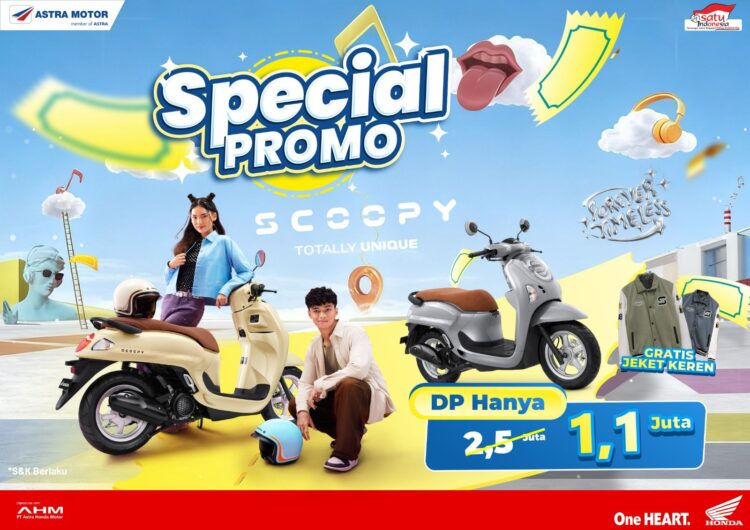 Selain lini matic kecil dan sport, penawaran menarik juga merambah ke segmen matic besar. Honda PCX160, ADV160, dan Vario 160 ditawarkan dengan uang muka yang sangat kompetitif, yakni mulai dari Rp1,2 juta hingga Rp1,3 juta. Khusus untuk pembelian Honda Scoopy, konsumen cukup membayar DP Rp1,1 juta dan akan langsung mendapatkan bonus jaket eksklusif.
