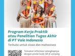 Sorowako, Berikabar.co – PT Vale Indonesia Tbk kembali membuka kesempatan bagi para mahasiswa untuk merasakan langsung pengalaman bekerja di industri pertambangan kelas