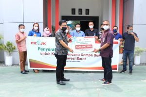 Kendari, Berikabar.id – Forum Komunikasi Industri Jasa Keuangan Sulawesi Tenggara (FKIJK Sultra) menyerahkan bantuan berupa dana tunai puluhan juta bagi korban gempa